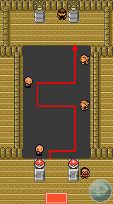 Agora, vá dar uma conferida no GYM, para conseguir chegar ao líder, além de derrotar seus discípulos terá que fazer um caminho marcado, confira na figura:
